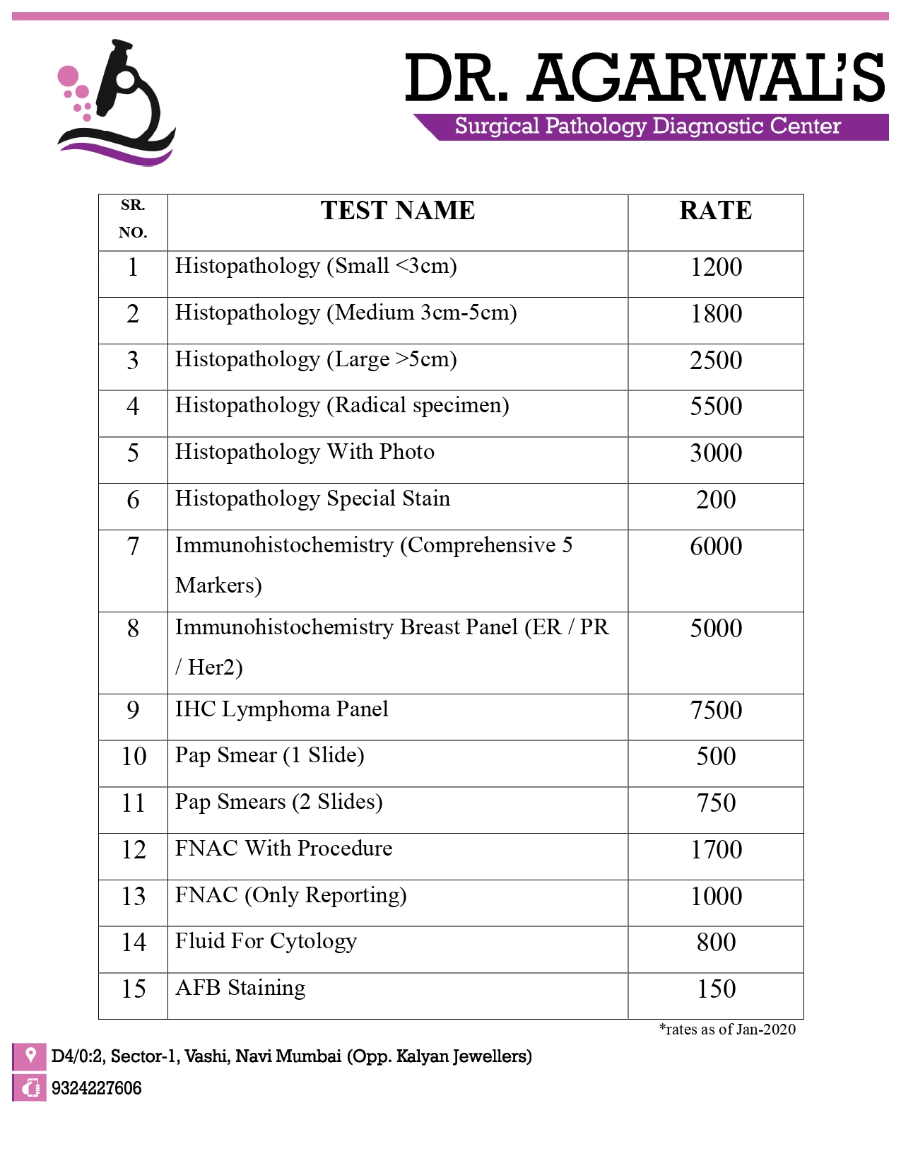 Dr. Agarwal Rate List