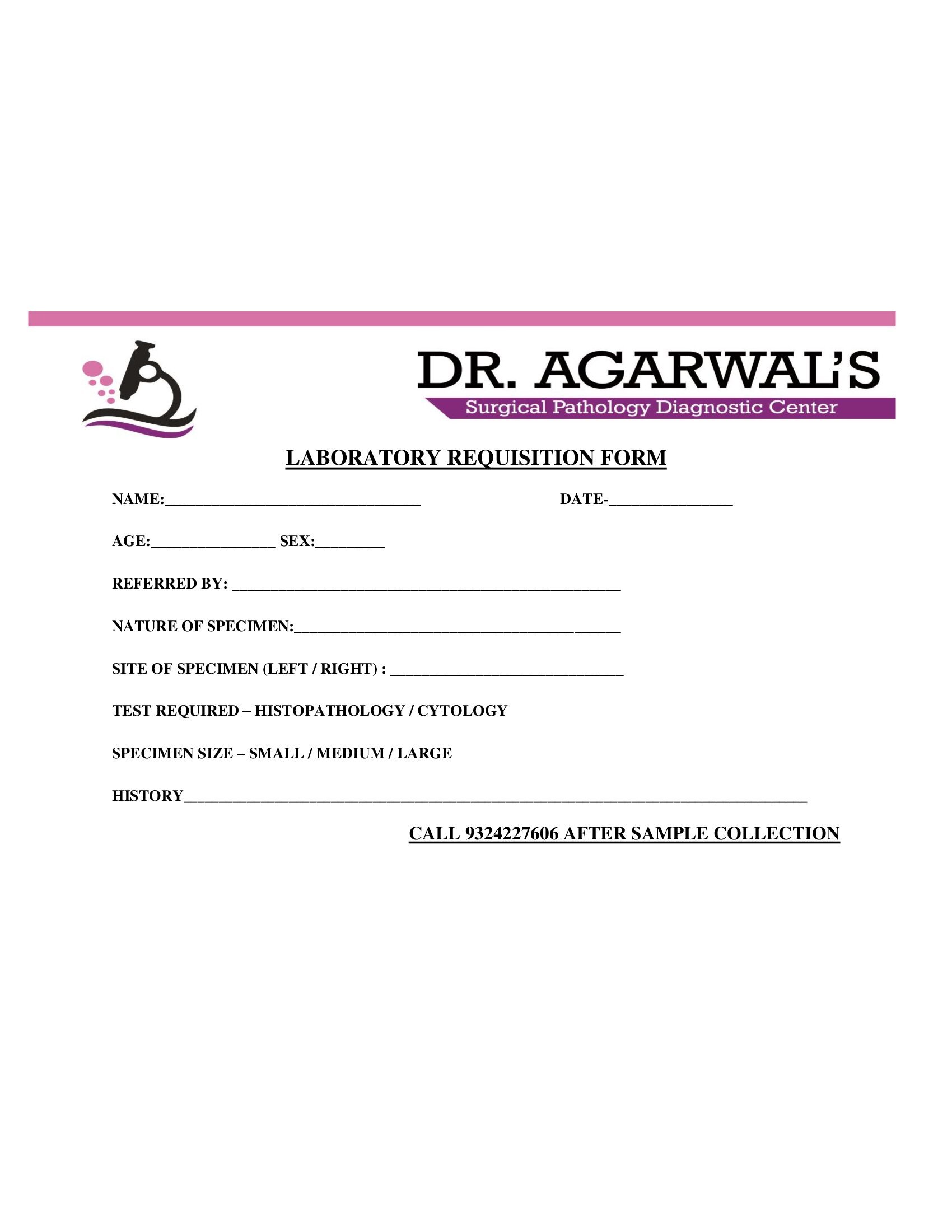 Dr. Agarwal Requisition Form